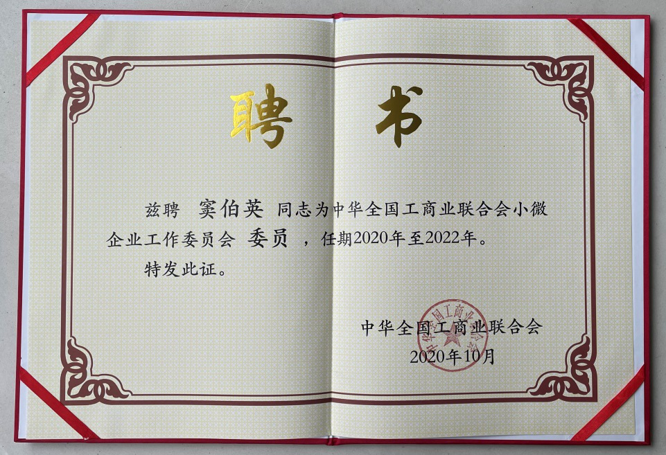 為進(jìn)一步落實(shí)新時(shí)代民營經(jīng)濟(jì)統(tǒng)戰(zhàn)工作的要求,有效擴(kuò)大統(tǒng)戰(zhàn)工作覆蓋面,加強(qiáng)與小微企業(yè)的聯(lián)系,積極打通小微企業(yè)參政議政的通道,推動(dòng)改善小微企業(yè)發(fā)展環(huán)境,經(jīng)中華全國工商業(yè)聯(lián)合會(huì)(簡稱:全國工商聯(lián))2020年第10次主席辦公會(huì)議研究,成立全國工商聯(lián)小微企業(yè)工作委員會(huì),并聘請(qǐng)洛陽泰斯特探傷技術(shù)有限公司(簡稱:泰斯特公司)CEO竇伯英女士出任中華全國工商業(yè)聯(lián)合會(huì)小微企業(yè)工作委員會(huì)委員。