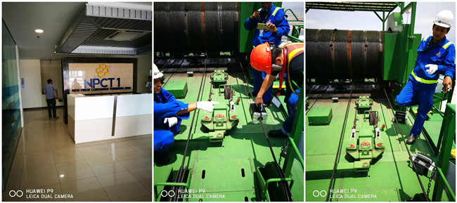 吊裝和工程車輛井然有序的運(yùn)轉(zhuǎn)著。我隨著NPCT員工登上幾十米高的岸橋,再來(lái)場(chǎng)TST鋼絲繩探傷儀現(xiàn)場(chǎng)操作培訓(xùn),不得不佩服印尼兄弟的學(xué)習(xí)能力,很快就熟練掌握鋼絲繩探傷設(shè)備的操作技術(shù)。哈哈,請(qǐng)?jiān)试S我小得意番,我們泰斯的設(shè)備是很容上手的嘛。