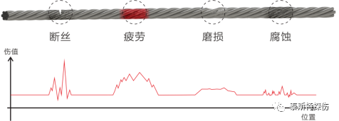 I級(jí)損傷:鋼絲繩原始瑕疵或早期擴(kuò)展,基本不影響使用安全性;應(yīng)力截面損失率<2.5%,危害程度——輕微度。